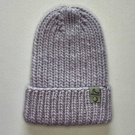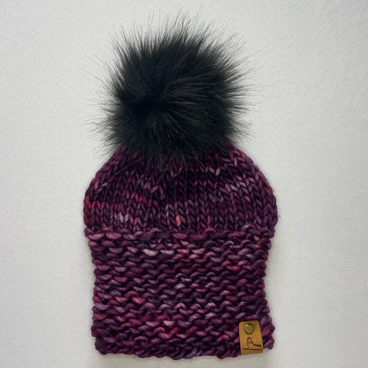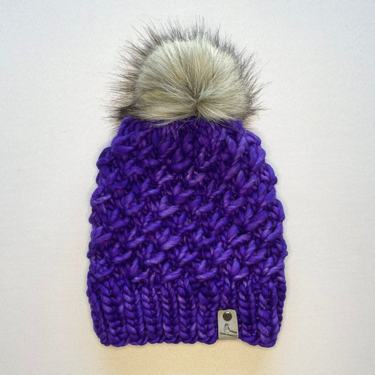 Purple Luxury Merino Wool Knit Hat with Faux Fur Pom Pom