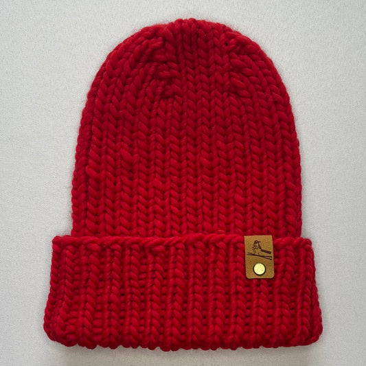 Maroon Luxury Merino Wool Knit Hat with Faux Fur Pom Pom