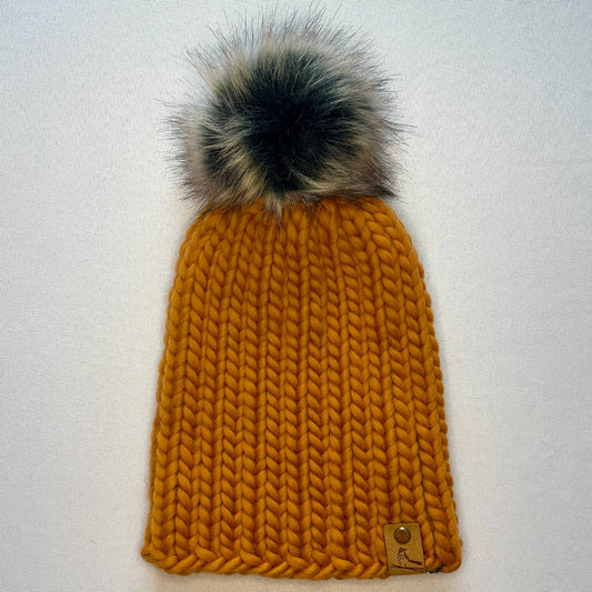 Ginger Peruvian Wool Knit Hat with Faux Fur Pom Pom