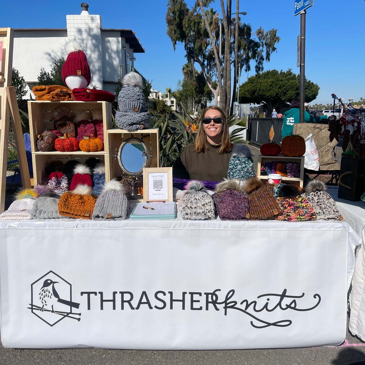 Whether its a hat, scarf, or small knit accessory, know that every item you purchase from Thrasher Knits is made by hand with love.